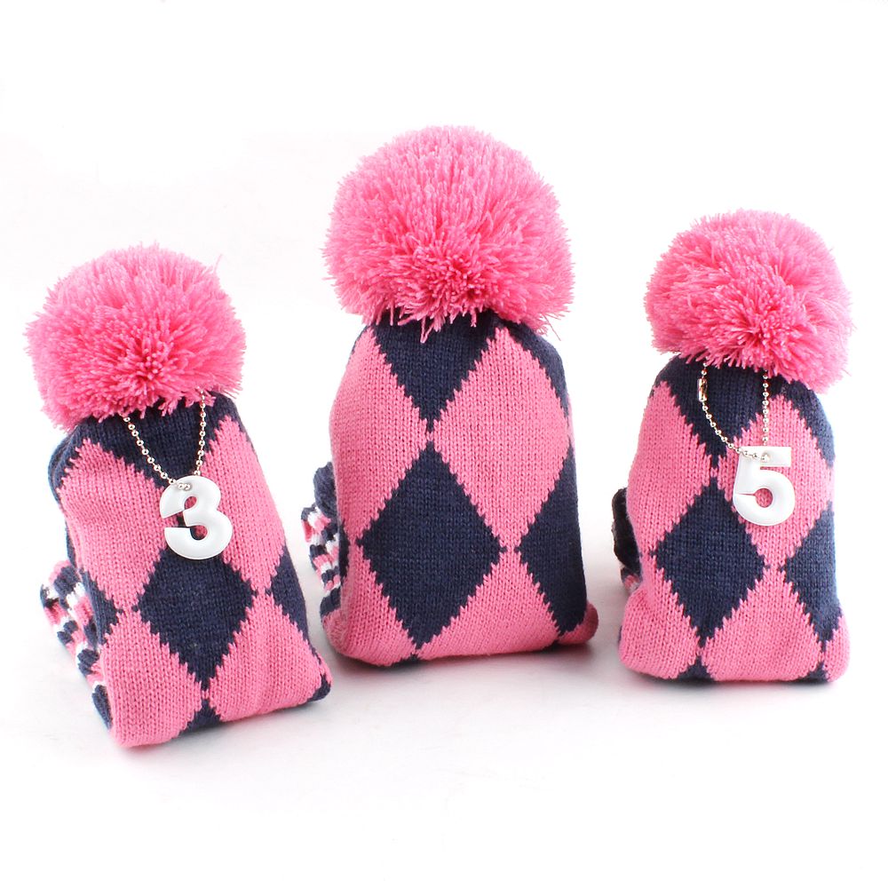 Retro Pom Pom Diamond Head Cover Set - Pink / Navy / White