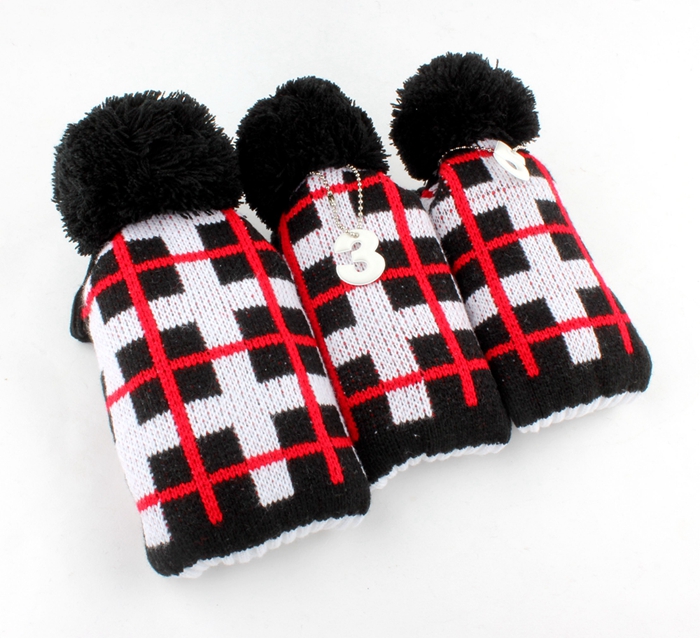 Retro Pom Pom Grid Style Headcover Set - Back / Red / White